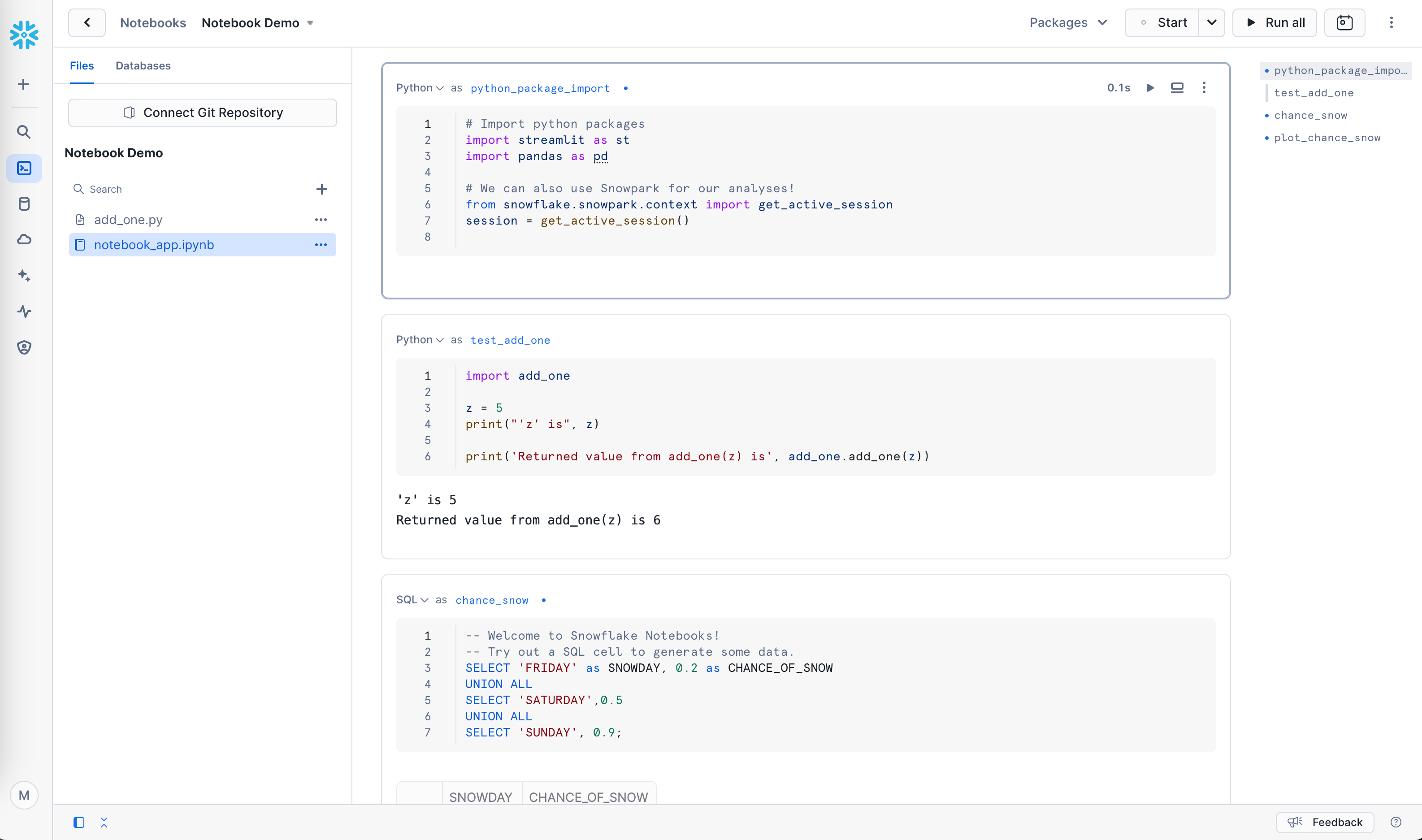 Once your notebook is set up, it’s time to start building! When you’re ready to share your work or move it to production, Snowflake Notebooks makes it easy to automate tasks and collaborate.