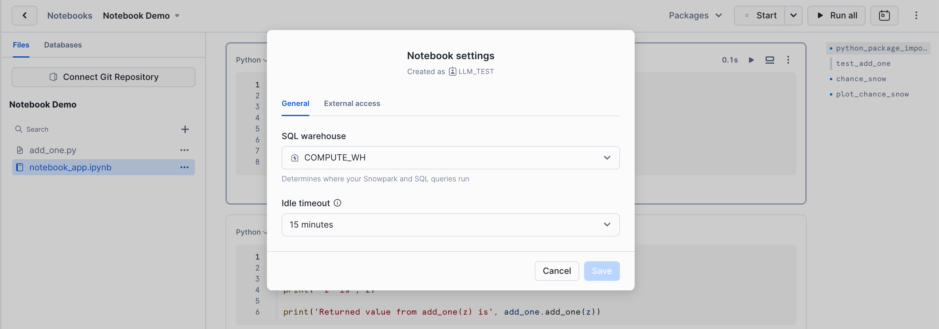 With your schema in place, it’s time to set up your Snowflake Notebook. Choosing the right warehouse and configuring it correctly can save you time and money. Trust me—you don’t want to waste hours of Snowflake compute time on an oversized warehouse!